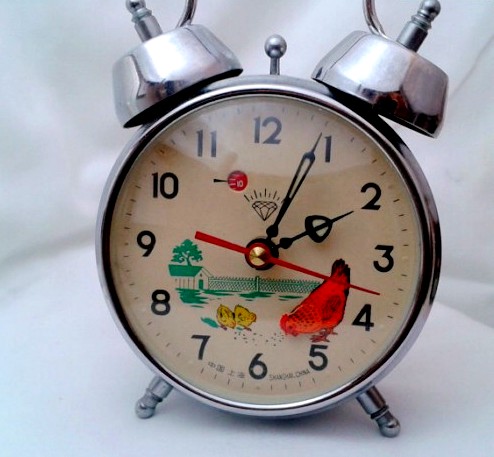 Peki başarısızlık sonrası ne yaptım? Yatak odasına geçip çalar saatimi getirdim. Hani şu tik takları duyulan zemberekli ve içinde bir tavuğun sürekli yeri eşelediği o efsane eski saatler 🙂 Evet evet bu yandaki saat işte 🙂 Sonra yere oturmasını söyledim, göz seviyesine gelecek şekilde önüne bir sehpa çekip saatin tik-taklarını ve yelkovanın hareketlerini rahatça göreceği şekilde pozisyonladım. Görsel hafızasına işlenmesi içinde saati 3 konumuna aldım ve ondan şunları yapmasını istedim;