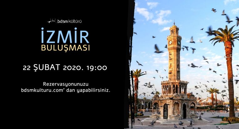BDSM Kültürü İzmir buluşmalarının altıncısını tüm İzmir’li Kinkster dostlarımızın desteği ile gerçekleştireceğiz. Katılımcılarımıza etkinlik mekanı, 21 Şubat Cuma günü SMS ile gönderilecek ve E-Posta kanalıyla ön bilgilendirme yapılacaktır.